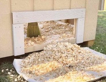 All of our coops have our signature Clean-Out-The-Coop Door™. This 10”x3’ door is an opening by the floor of the coop that allows for easy clean out of the shavings/debris from your coop. Another feature that contributes to cleanliness is our attention to detail in that owners never have to enter their coop to either gather eggs or open the run.